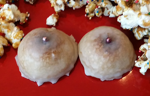 It was very obvious that the key to setting a sexy mood with food was to inject lots of chocolate with the champagne. Taittinger's Champagne Rose was the right bubbly for a romantic atmosphere. Truffles, handmade marshmallows, caramel popcorn drizzled with chocolate and little cakes that looked like breasts set the tone. All bite-sized and easy to pop into your lover's mouth (the treats, not breasts).Decor wise, lots of red and pink was right for the holiday. Floral arrangements combined lots of different flowers and textures in different shades of pink and red. The flowers were loosely tied so it seemed less formal, more romantic and carefree.